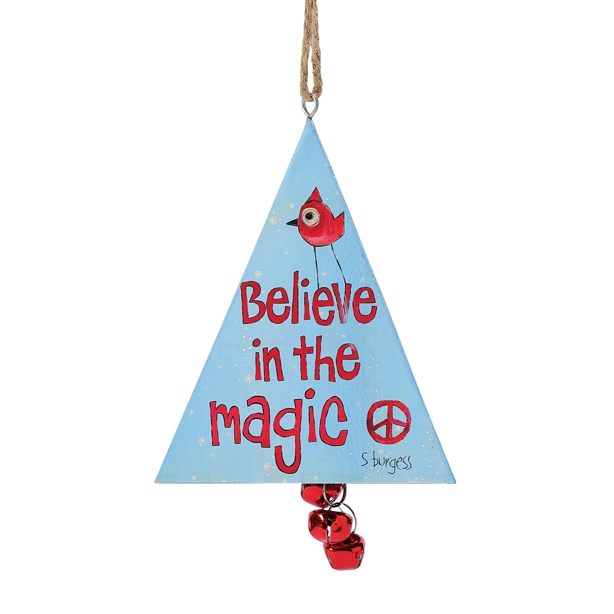 Enesco Izzy and Oliver Painted Peace by Stephanie Burgess Snowman Believe in Magic 3-Sided Triangle Hanging Ornament, 5 Inch, Multicolor